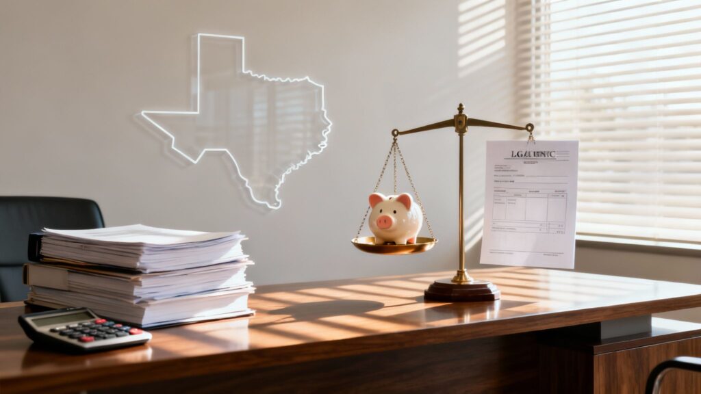 Divorce attorney fees in Texas have seen a steady increase. Most lawyers now bill between $200 and $500 per hour, with the average sitting right around $267. For a contested divorce—where you and your spouse disagree on key issues—total legal fees can range from $7,000 to $25,000, and sometimes more if the case is particularly complex. You can explore some of the data behind these numbers in this research on Texas divorce attorney expenses.